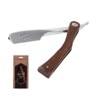 The Dark Stag Folding Kamisori razor is a highly requested variation on one of our flagship products. Featuring exactly the same great shave and rapid blade change mechanism that is still making the original Kamisori so well known amongst the barber community, but now featuring a folding design for greater portability and a slightly different take on style. Brand new and unique to Dark Stag, this straight handled folding Kamisori razor uses regular double edge razor blades meaning you can choose your favourite brand.  With one edge used per client this provides the most cost effective route to a perfect shave. The spring mounted one touch blade holding mechanism can be opened easily for cleaning and disinfecting. This model offers 1mm of blade clearance. Changing the blade takes 2 seconds: pinch the head to drop out the used blade and pop in the replacement.