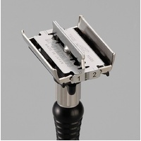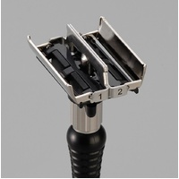 The Feather Adjustable Double Edge Razor is very similar to our Feather Popular Double Edge Razor. The difference is a unique feature that allows you to switch between a mild and aggressive shave. By switching the lever to '1' the blade has less exposure and gives a more mild shave. If you switch to '2' the blade becomes more exposed and gives a more aggressive shave. The adjustable blade exposure gives a personalized shave so you can determine what's best for your skin and hair type.