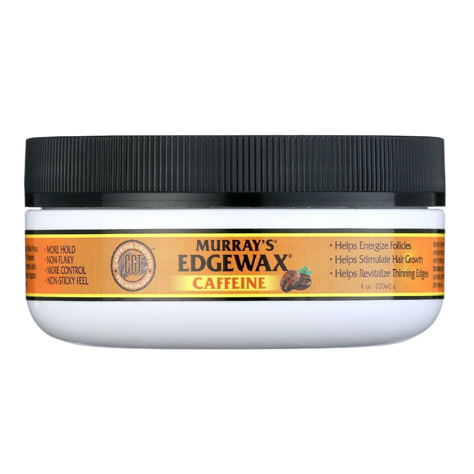 Murray’s Edgewax with Caffeine helps stimulate hair growth by re-energizing follicles and helps revitalize thinning edges. Designed to help stimulate hair growth, it still combines a premium gel with the holding power of Australian Beeswax providing a high shine, maximum hold, with no flaking. Murray's Edgwax with Caffeine is strong enough for the most demanding areas, yet soft enough for easy application.