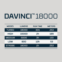The DAVINCI® 18000 is the pinnacle product to NEBO’s DAVINCI® rechargeable flashlight series and is the brightest to date with 18000 lumens making it perfect for camping, hiking, hunting, fishing or other outdoor activities. It is a rugged, yet refined design and includes our latest smart technology features like Optimized COB, Smart Power Control (SPC), Smart Temperature Control (STC), Direct-to-Low Startup and our proprietary Mag Dial to quickly and easily select and power up in the light mode of your choice.