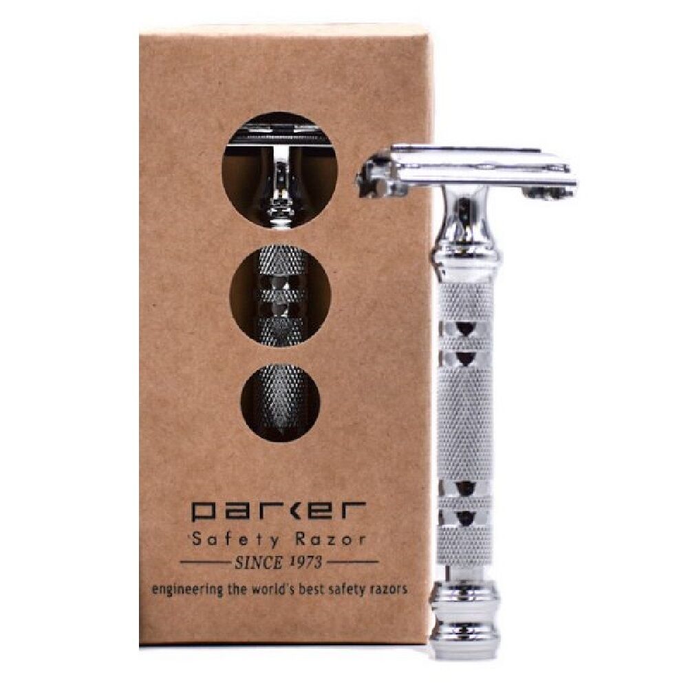 The Parker 66R is a heavyweight safety razor with the world-famous Parker twist-to-open head for a close, comfortable shave. Twisting the knob on the bottom of the razor will open the butterfly doors for blade insertion. This beautifully designed chrome plated all brass razor is a smooth shaver. Parker Safety Razor has been making the highest quality, precision engineered safety razors for over 45 years.